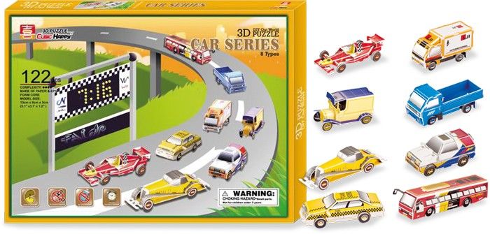 Sada 3D puzzle 8 autíček je stavebnice vyrobena z velmi pevného a silného papíru. Jednotlivé díly puzzle se sestavují podle čísel na výrobku.
