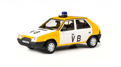 Model auta Škoda Favorit 136L (1988) Veřejná Bezpečnost v měřítku 1:43 vyrobený českým výrobcem modelů Abrex může být hezký dárek pro každého fandu této značky Škoda.