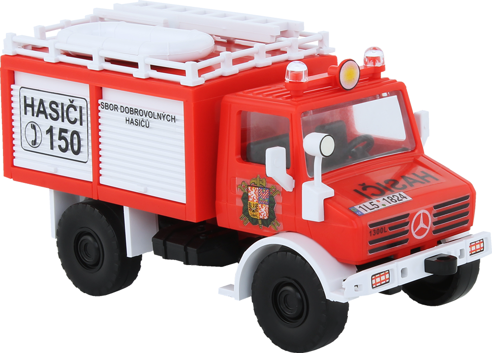 Model nákladního auta Mercedes Unimog Fire Brigade je vyrobený z barevného plastu a obsahuje arch nálepek na polepení vozidla. Modely z této stavebnice baví nejem děti, ale i tatínky.