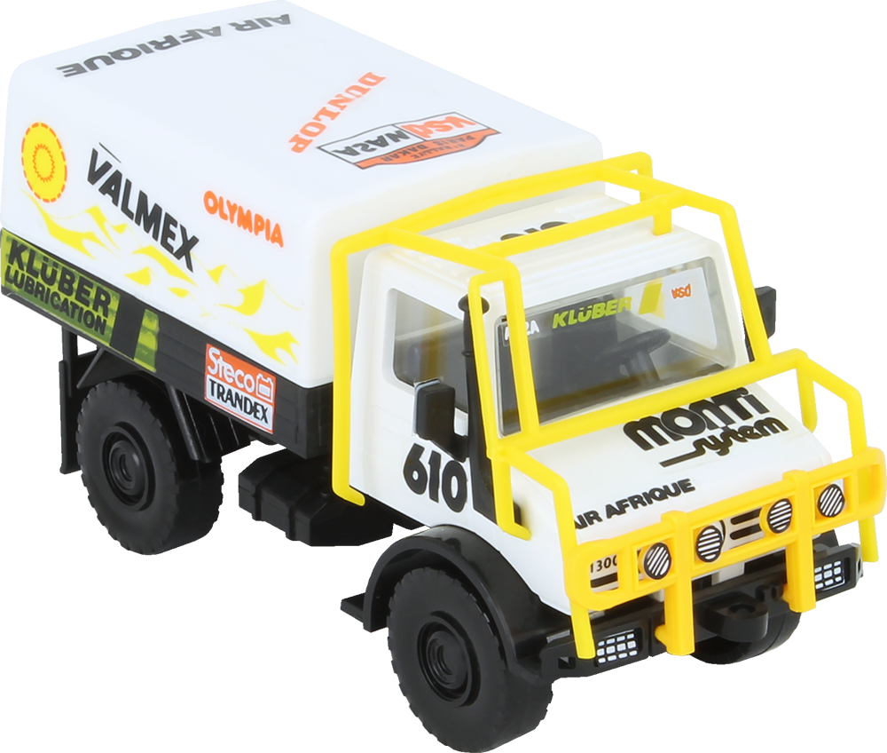 Model nákladního auta Mercedes Unimog Rallye je vyrobený z barevného plastu a obsahuje arch nálepek na polepení vozidla. Modely z této stavebnice baví nejem děti, ale i tatínky.