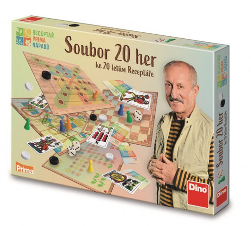 Soubor 20-ti her v jediné krabici. Receptář prima nápadů slaví 20 let a právě k této slavnostní příležitosti vydáváme tento povedený balíček rodinné zábavy jako je Halma, dáma, prší, mlýn, bláznivé i klasické Člověče a mnoho dalších super her pro děti i dospělé se schovávají v balíčku, z jehož obalu se na vás usmívá herec a současný moderátor receptáře, Oldřich Navrátil.