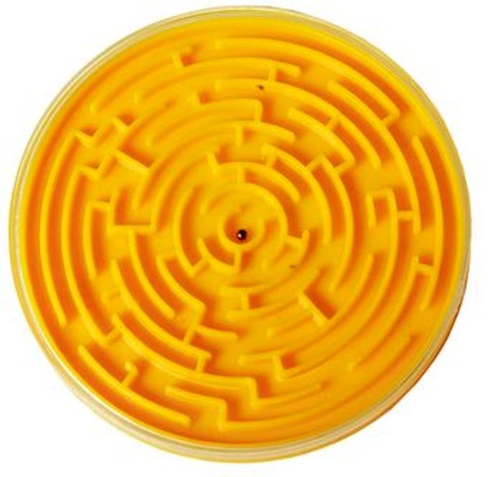 Plastový hlavolam dokáže zabavit každého na dlouhou chvíli. Cílem je dostat kuličku do středu hlavolamu.