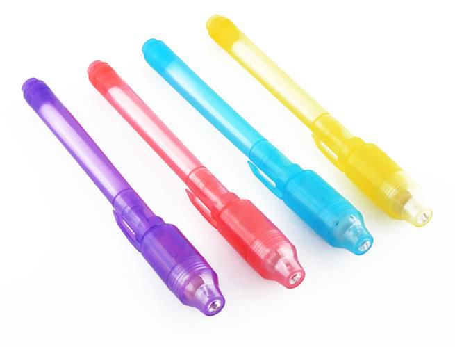 Toto originální pero se zalíbí jak malým špiónům, tak studentům. Pero je naplněno inkoustem, který je viditelný pouze pod UV světlem. UV lampička je samozřejmě součástí balení a slouží také jako vršek pera. Toto pero je dokonalý dárek. Velikost: 135 x 15 x 15 mm