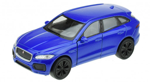 Kovový model auta Jaguar F-Pace v modré barvě a měřítku 1:34 značky Welly.
