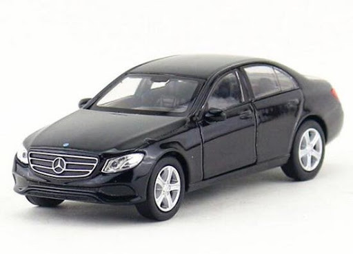 Kovový model auta Mercedes Benz E-Class 2016 v čené barvě a měřítku 1:36 značky Welly.