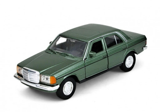 Kovový model auta Mercedes-Benz E-Class 230E zelené barvy v měřítku 1:34/39 značky Welly. Model autíčka má kovové osy kol a detailní zpracování karoserie včetně interiéru automobilu. Na modelu se otvírají dveře.