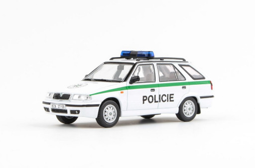 Model auta Škoda Felicia FL Combi (1998) Policie ČR s radarem v masce v měřítku 1:43 vyrobený českým výrobcem modelů Abrex, který může být hezkým dárkem pro každého fandu této značky Škoda.