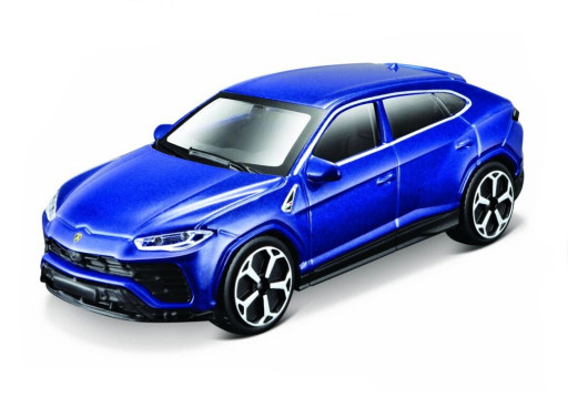Kovový model auta Lamborghini Urus v modré barvě od výrobce hraček Bburago v měřítku 1 : 43. Autíčko je vyrobeno z kovu a plastu.
