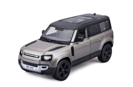 Kovový model auta Plus Land Rover Defender 110v měřítku 1:24 značky Bburago. Model má detailní zpracování karoserie včetně interiéru automobilu. Na modelu se otvírají dveře.