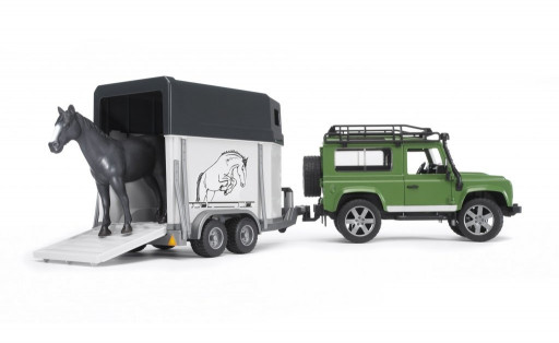 Bruder 2592 Land Defender s přívěsem na koně má spoustu funkcí, jako např. otevírací dveře a kapotu motoru, odnímatelné tažné zařízení, vyjímatelné zadní sedačky atd. Další funkcí auta jsou zatáčecí přední kola ovládaná pomocí prodlouženého volantu.