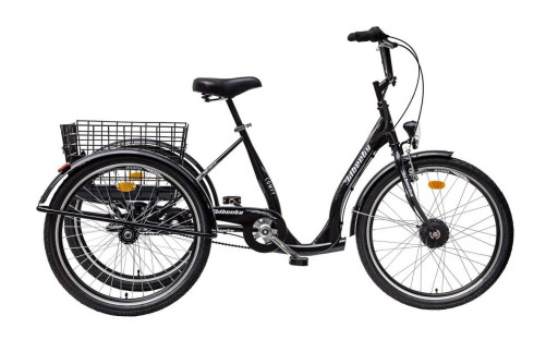 Trojkolka je vybavená elektromotorem integrovaným v předím náboji s výkonom 250W a maximální rýchlostí podpory 25km/h.