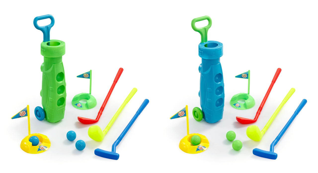 Skvělý golfový set se třemi pestrobarevnými holemi, třemi golfovými míčky, dvěma jamkami a vozíkem pro přepravu vašeho golfového vybavení. Golf si můžete zahrát kdekoliv jen budete chtít, stačí vše naložit do vozíku a vyrazit. Ve dvou barevných variantách. Baleno jako namíchaný assort. Rozměr balení: 17 x 55 x 13,5 cm. Věk 3+
