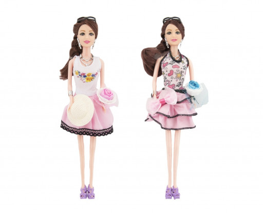 Kloubová plastová panenka ve stylových šatech a s doplňky. Panenka má na výšku 30 cm a je vhodné pro děti od 3 let.
