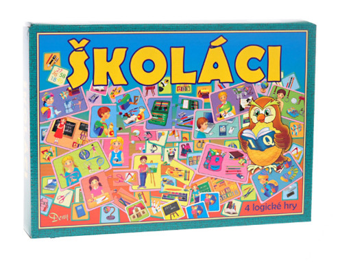 Soubor naučně-logických společenských her Školáčci obsahuje součásti pro čtyři hry. Pomocí těchto her získávají děti veselým a hravým způsobem některé poznatky a informace o věcech souvisejících se školou. Hry rozšíří dětem vědomosti, logický úsudek a myšlení.