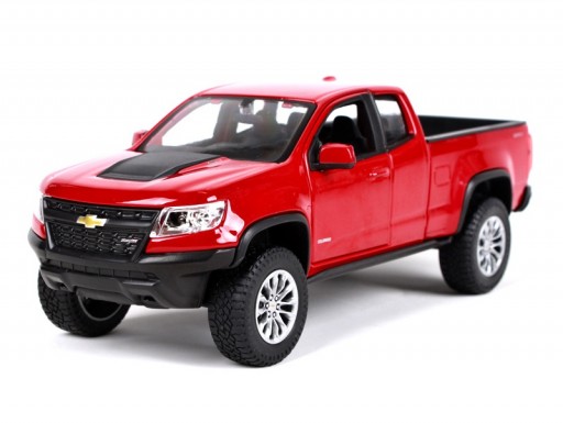 Kovový model auta Chevrolet Colorado ZR2 červené barvy v měřítku 1 : 24 značky Maisto. Model autíčka má otvíratelné dveře. Autíčko je detailně zpracované a vyrobené z kovu a plastu.