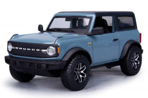 Kovový model auta Ford Bronco 2021v měřítku 1:24 značky Maisto má detailní zpracování karoserie a interiéru. Model má otvírají dveře.