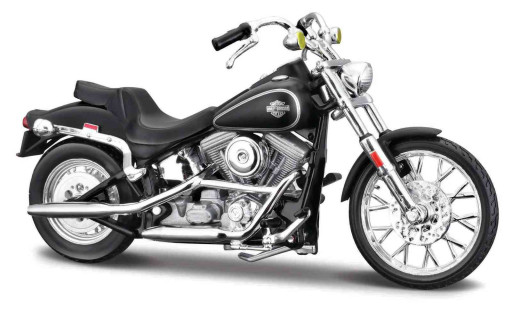 Kovový model motorky Maisto Harley Davidson FFXST Softail (1984) značky Maisto v měřítku 1 : 18. Motorka má délku cca. 13 cm, šířku (včetně řídítek) cca. 5 cm.
