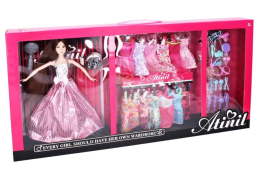 Panenka se šatníkem potěší všechny malé milovnice módy. V balení najdete panenku, šatník, 12 druhů šatů, boty, módní doplňky, hřeben a kartáč pro úpravu účesu.