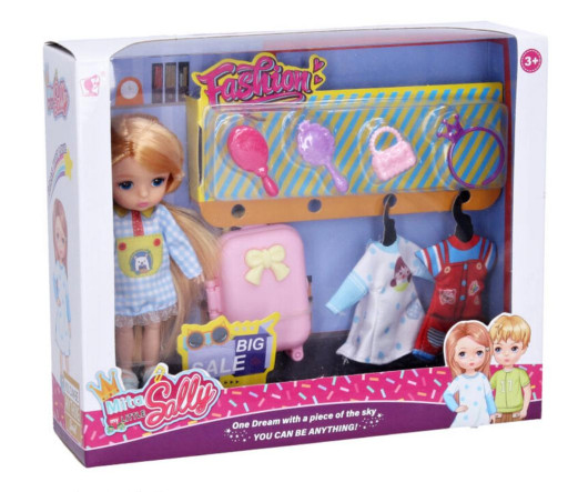 Panenka, která se ráda převléká a cestuje. Velikost panenky 13cm.