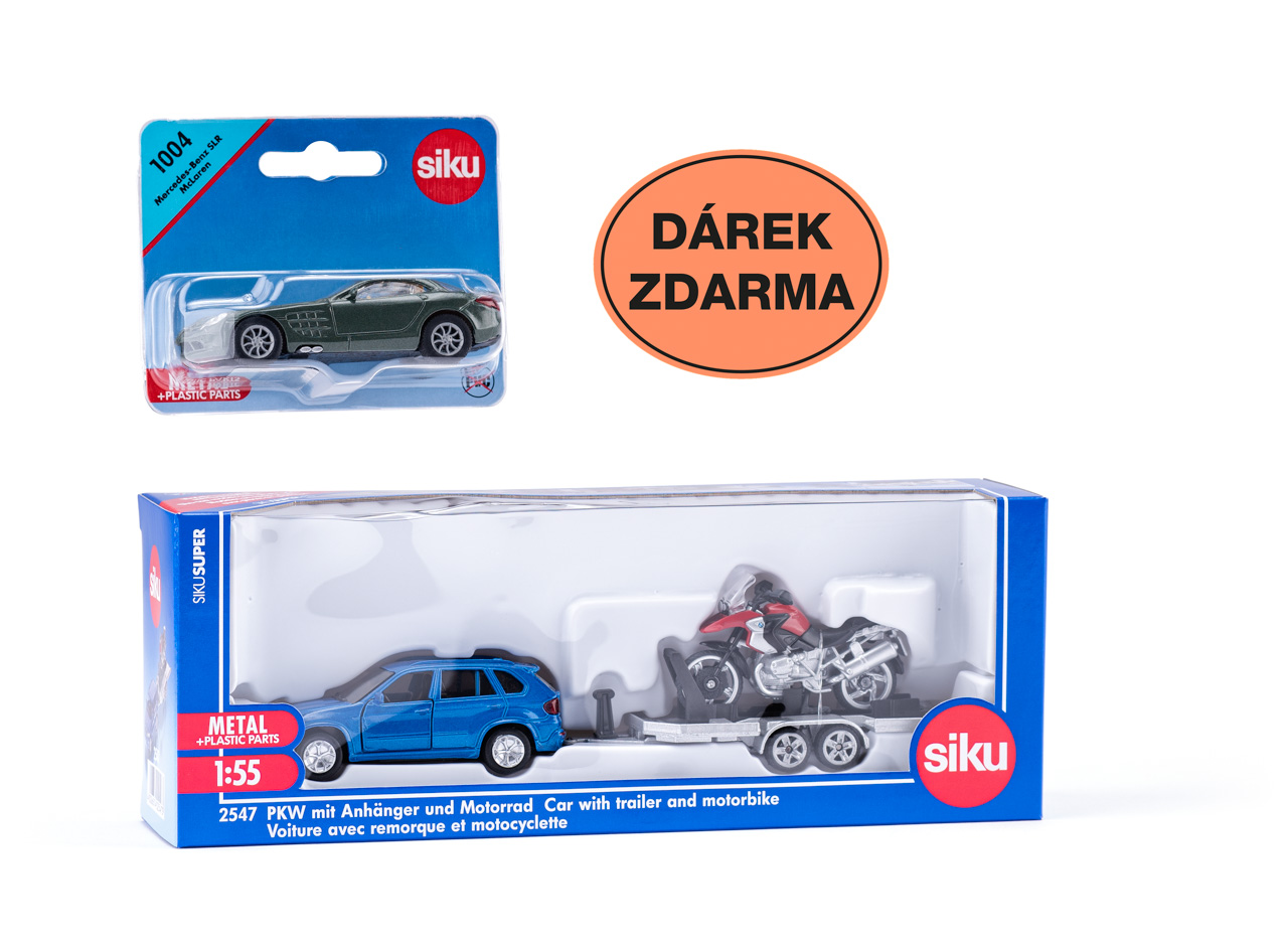 SIKU Super - Auto s vlekem a motorkou + dárek
