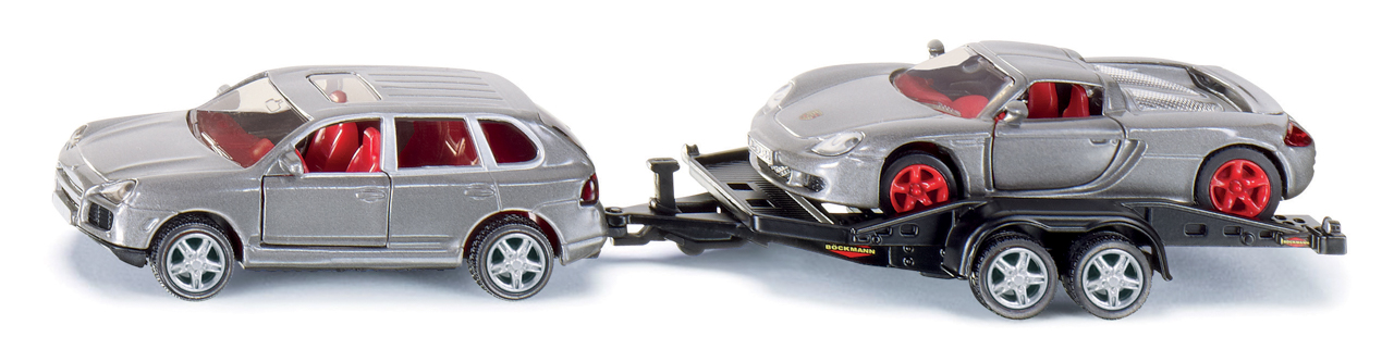SIKU Super - Osobní automobil s přepravním přívěsem, 1:55