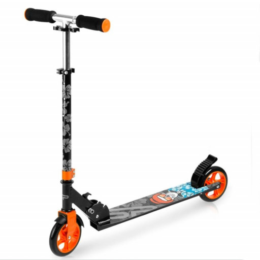 Koloběžka má výškově nastavitelné řídítka, které vám umožní nastavit si výšku podle vašich potřeb. Deska, která je na vrchní straně pokrytá protiskluzovou grafikou, poskytuje pohodlí během jízdy. Možnost skládání zajišťuje pohodlnou přepravu a skladování koloběžky.