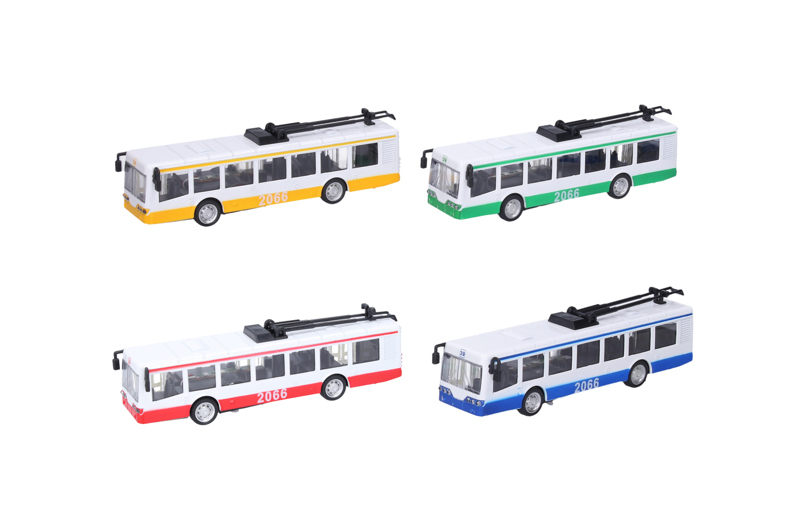 Trolejbus v měřítku 1:90 – dopravní prostředek MHD vyrobený z kovu a plastu o velikosti 16 cm, se zpětným natažením, světelnými a zvukovými efekty. Baterie: 3x AG13, jsou součástí. Trolejbus je k dispozici ve čtyřech barevných variantách: zelená, modrá, červená a žlutá. Assort je náhodný mix modelů. Výběr nelze ovlivnit. Rozměry balení: 9 x 22 x 6 cm. Věk: 3+