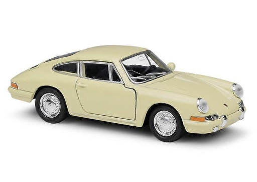 Kovový model auta Porsche 911 (1964) v krémové barvě a měřítku 1:34/39 značky Welly. Model autíčka má kovové osy kol a detailní zpracování karoserie včetně interiéru automobilu. Na modelu se otvírají dveře.