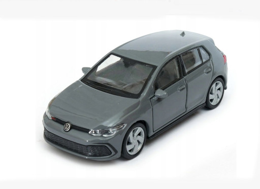 Kovový model auta Volkswagen Golf 8 GTi v šedé barvě a měřítku 1:34/39 značky Welly. Model autíčka má kovové osy kol a detailní zpracování karoserie včetně interiéru automobilu. Na modelu se otvírají dveře.