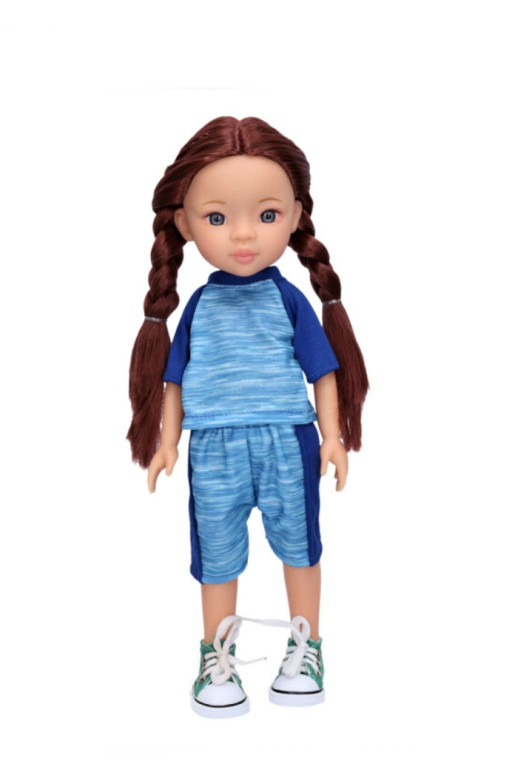 Plastová panenka ve sportovních šatech vysoká 33 cm.