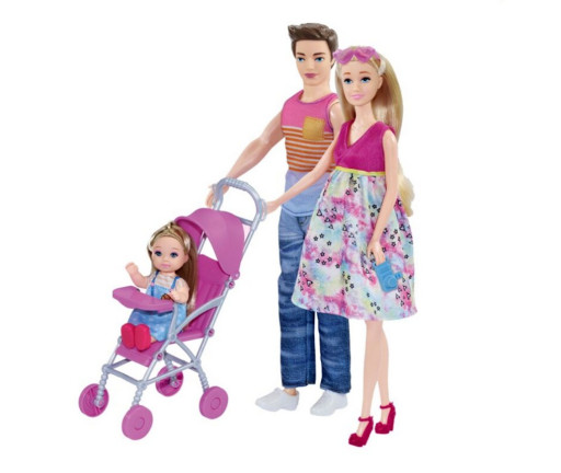 Obsahuje těhotnou panenku s manželem, malou holčičku, miminko, kočárek, doplňky pro panenku. Panenka má v břiše malé miminko, které jde vyjmout. Bříško jde otočit na ploché, nebo těhotné s miminkem vevnitř.
