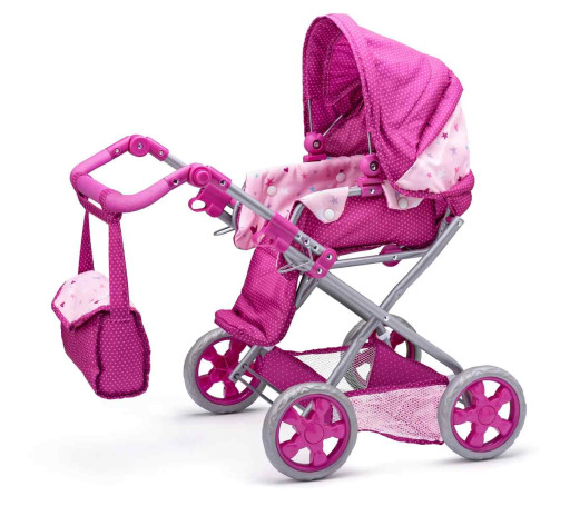 Hra podporuje představivost, rozvíjí sociální cítění, pamět a hrubou motoriku. Kočárek pro panenky je vyroben z kombinace materiálů: látka, kov a plast.